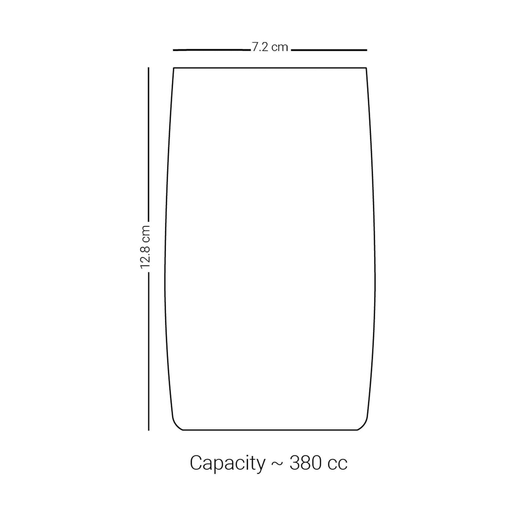 Dimensions: Capacity: 380 cc, Diameter: 6.6 cm, Height: 13 cm, Width: -, Length: -