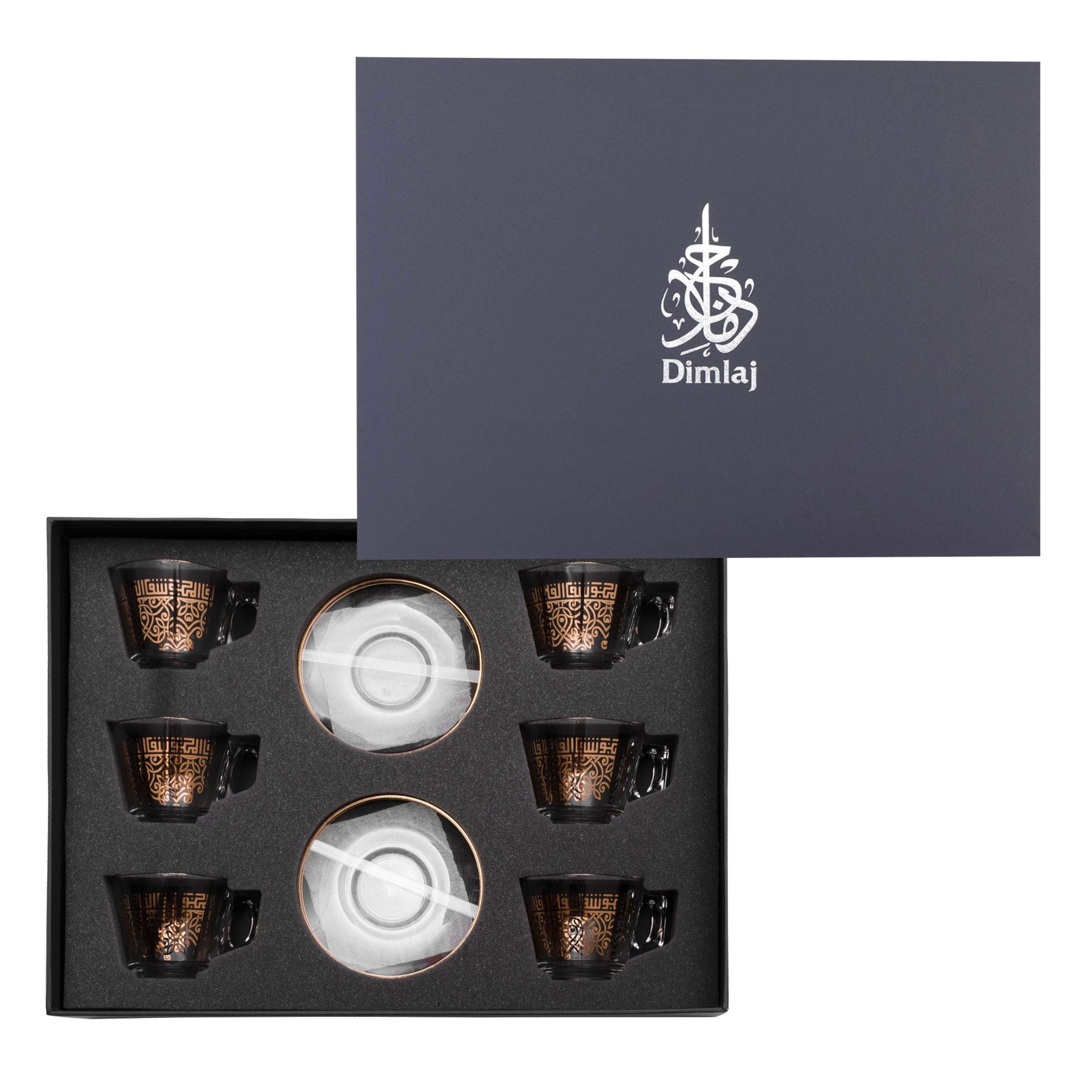 Dimlaj Shafa Set of 6 Pcs Tea Cups and Saucers (Gold)