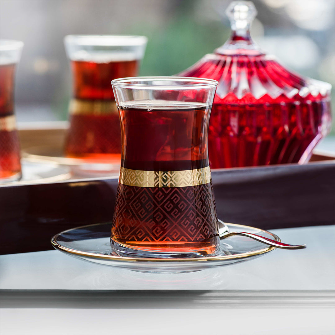 Dimlaj Duja Set of 6 Pcs Tea Cups and Saucers (Gold & Black)