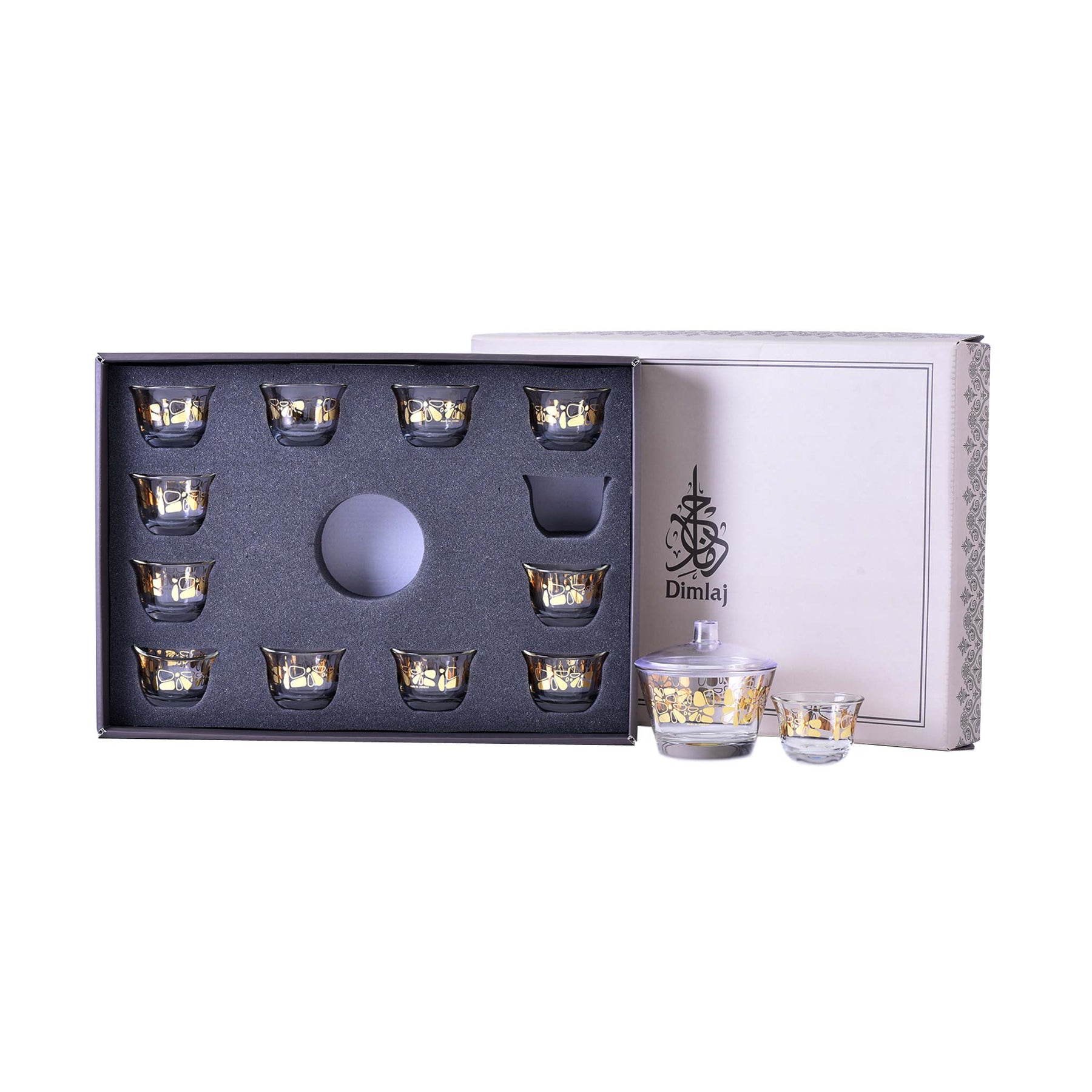 Dimlaj Set of 14 Pcs Cawa Cups and Sugar Bowl (Gold)