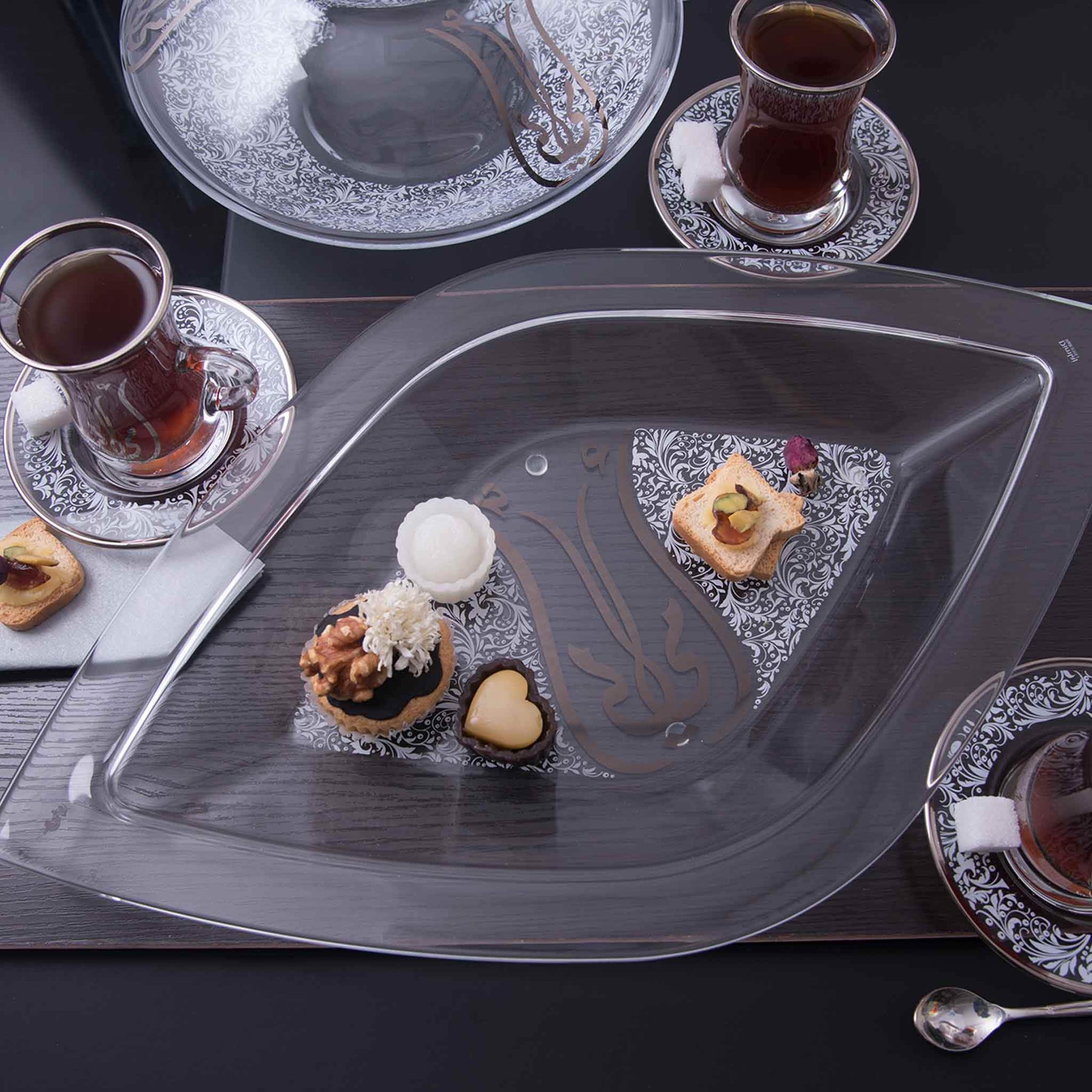 Dimlaj Mother Large Rhombus Serving Plate (Platinum & White)